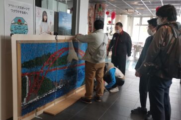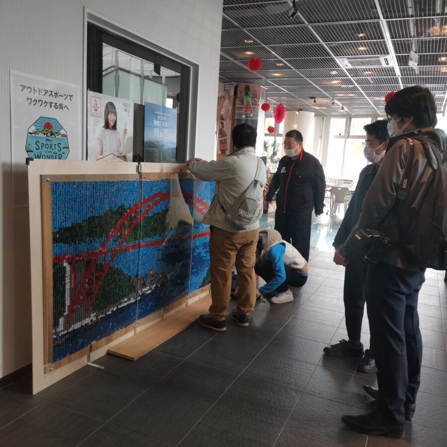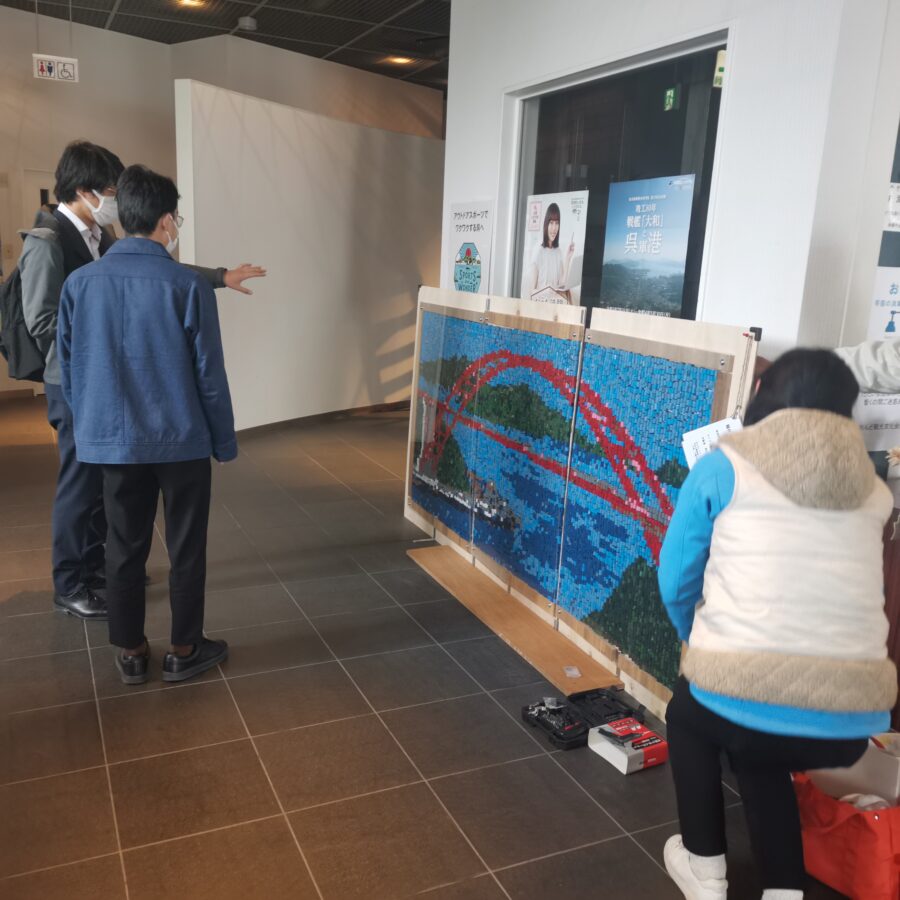 うみごみかいしゅうチーム カキ養殖用プラスチックパイプモザイクアート